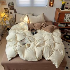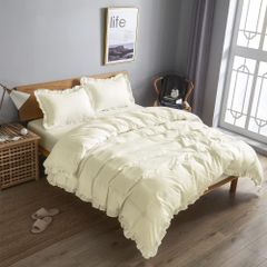 【数量限定】洋式・和式兼用 寝具カバーセット ボックスシーツ ベッドシーツ フリル付き 枕カバー ベッドカバー ピーチスキン加工 掛け布団カバー 3点セット 洗い替え シングル 布団カバー 速乾(アイボリー) Home HOdo
