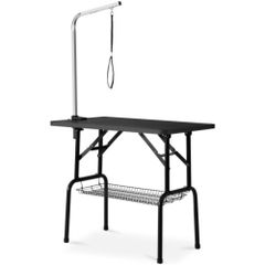 リコメン堂 トリミングテーブル 折りたたみ 棚付き トリミング台 トリミング 折り畳み グルーミング 高さ75cm 犬用 猫用 テーブル ペット用 シャンプー カット ブロー ブラッシング (ブラック)/