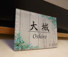 ヴィンテージ木目ボタニカルイラストアクリル表札*UV印刷45度斜めカット