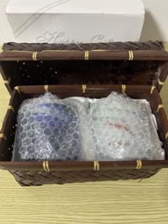 貴重 琉球ガラス ペアグラス 分厚い作り 旧来製法 竹編み箱付き