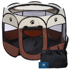 【在庫セール】組み立て不要 猫 収納バッグ付き 犬用 ケージ 折畳み 折りたたみ式 ゲージ 折り畳み 幅91cm×高さ58cm ペットサークル (L ブラウン)