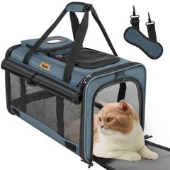 【迅速発送】Tresbro 猫 キャリーバッグ アップグレード版 猫 きゃりーバッグ ロック式ダブルファスナー カーテン付きの 猫 キャリー 犬 キャリーバッグ 変形しない 通気性 車載/旅行/通院/防災害避難用 ペット キャリーバッグ 猫用 犬用 小型犬用