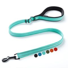 【人気商品】2cm幅 反射材採用 40kgまで 大型犬対応 クッション付きハンドル 中型 小物取り付け可能 小型 1本で110?180cmまで長さ調節 (ターコイズ) 犬用リード
