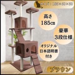 キャットタワー 185cm 据え置き 爪とぎ 猫 大型 多頭飼い ブラウン