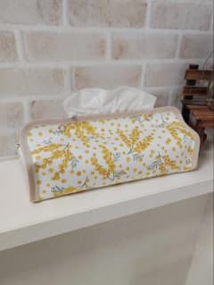ティッシュケースカバー ミモザ柄 アイボリー