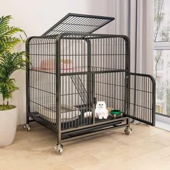 BTM ウサギケージ 犬ケージ 猫ケージ 小動物用 室内飼い 引き出しトイレ付 掃除簡単 移動便利 キャスター付 スチール製 天井扉 脱走防止 いぬ ネコ うさぎ ハムスター 頑丈 キャット 休憩所 ペット用品n