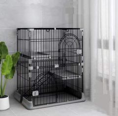 N&S Sサイズ キャットランドケージ 猫ケージ 大型 折りたたみ キャットケージ ワイド扉 多頭飼い 脱走防止 猫ハウス 2段 3段 組み替え自由 2-1(76×50.5×89CM) ブラックn