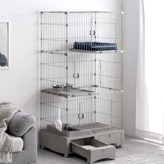 E2725◆未使用 猫 ケージ キャットケージ トイレ付き 2段 大型 掃除しやすい 飛散軽減 脱走防止 通気性 組立簡単 室内用 ペット用品 Pertice・1234