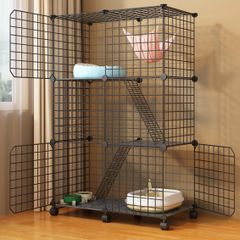 UYTON 猫ケージ 子猫用ケー ジ 3段 猫ハウス 【カラー:ブラック ?3段-75X36X114.5CM】室内用 大型猫用ケー ジ 多頭飼い猫 大きめ動物ケ ー ジ 折り畳み式 移動便利 組立簡単 快適なスペース ネコ 小動物・子猫用ケ ージ DIY組立/