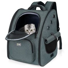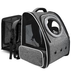 Tresbro 最新型 犬 猫 リュック カーテン付きの ペットキャリー 折り畳み式 きゃりーバッグ 小型犬・小動物用 旅行/通院/災害避難に最適 お出かけ バッグ ダークグレー 1