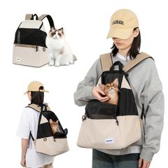 【人気】猫 犬用 ペット キャリーバッグ 犬 猫用 リュック フロントバッグ,呼吸頭 通気性 両手解放 防水ナイロン素材 快適 軽い おしゃれ 小型犬/猫用 お出かけ用 リュッ 電車 旅行 ハイキング 持ち運び便利 ポケット付き 7キロまで対応 ベージュ