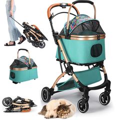 JZOOOZ ペットカート 分離型 キャスター付き 前輪360°回転 犬用ベビーカー組み立て簡単 軽量 通気 折りたたみ式 取り外し可能 犬用カート収納簡単 多機能 収納 大容量 高耐荷重 猫 犬用 小型犬 中型犬 外出便利 お出かけ 散歩 (ブルー 66 1