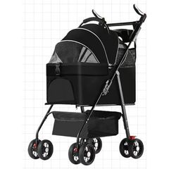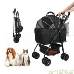 ペットカート 分離型 ペットバギー ワンタッチ折りたたみ 犬 バギー 犬 4輪耐摩耗 猫 犬用 小型犬 前輪360°後輪ブレーキ付 軽量犬用ベビーカー ペットカート 多頭 取り外し可能 ブラック 1