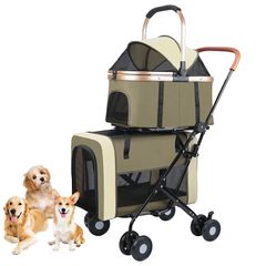 CozyMeow ペットカート 分離型 取り外し可能 4輪 犬 カート 多頭 小型犬 中型犬 耐荷重30KG 折りたたみ可能 軽量 ベビーカー ドッグ バギー 前輪360°後輪ブレーキ付 コンパクト收? 飛び出し防止 (カーキ) 1