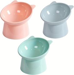 Aseren ペット フード ボウル 食器 餌 お水 入れ 皿 3色 セット 犬 猫 食べやすい 斜め (ピンク ブルー グリーン)