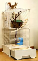 小動物ケージ 2段 大型 引き出し式トレイ付き 37*37*90.5cm リスケージ チンチラ/モモンガ/フクロモモンガ/デグー/フェレット/シマリス用 鳥類の飼育にも対応可能です 通気性 金網 縦型デザイン 掃除簡単 日本語説明書付き(白い)n