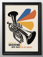 15049ジャズ トランペット 音楽 A3 サイズ ポスター アート おしゃれ 絵画 インテリア 北欧 イラスト マット紙 艶消し アートパネル 額 フレーム デザイン 壁掛け ギフト 新築祝い ディスプレイ