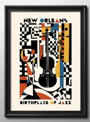 15047ジャズ ニューオーリンズ A3 サイズ ポスター アート おしゃれ 絵画 インテリア 北欧 イラスト マット紙 艶消し アートパネル 額 フレーム デザイン 壁掛け ギフト 新築祝い ディスプレイ