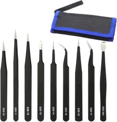 Ailunate ピンセット 精密 静電防止 極細 プラモデル 工具 ステンレス 防塵 ツイーザー 時計修理 模型 電子機器 収納袋付き 9種類