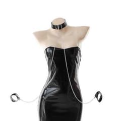 コスプレ 衣装 ワンピース エナメル ベアトップ風 チェーン ミニ ナイトウェア