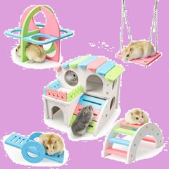 小屋 かわいい ペットスポーツ 遊び場 ブランコとPVCシーソー レインボーブリッジ ストレス解消 玩具 面白い 運動不足解消 おもちゃ 小動物用 おしゃれ ケージ ハムスター 複数カラー ハムスター ハウス (H03) 5点セット