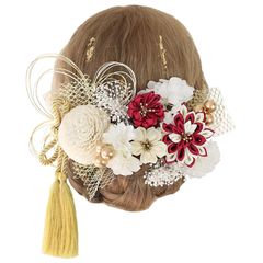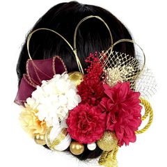 七五三 髪飾り ヘッドドレス 着物リメイク 赤白 しぼり アンティーク
