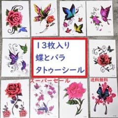 ★13枚★ 貼るだけ ★タトゥーシール バラ 蝶 新品