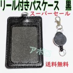 ♥スーパーセール♥黒色 リール付き パスケース ブラック 黒