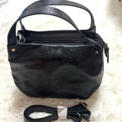 新品未使用★牛革★黒の花柄エンボス ハンドバッグ