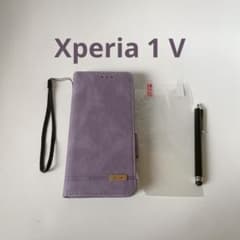 Xperia 1 Vケース 手帳型 財布型 カード収納 スタンドフィルムパープル