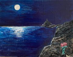絵画 “月光” アクリル画 ヒーリング 海 バラ