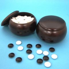 新品 碁笥碁石セット プラスチック碁笥銘木大と打ち心地ある硬質ガラス新生碁石竹(約9mm厚)のセット