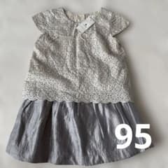 ベビーギャップ セレモニードレス アイボリー刺繍トップ・グレーのワンピース 95