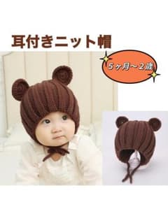 新品 耳付き キッズ ニット帽 ブラウン かわいい 防寒 帽子 子ども用