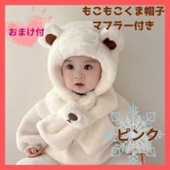 【極暖】くま耳 帽子 ベビー キッズ マフラー 防寒 ネックウォーマー ピンク