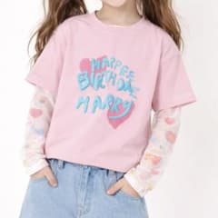 子供服 女の子 レイヤード風キッズTシャツ(ハートロゴ) 130cm