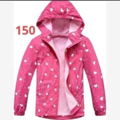 ピンク 撥水 フリース ウインドブレーカー 150 ハート 防寒