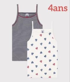 プチバトー 新品 未使用 キャミソール ハート トリコロール 2枚組 4ans