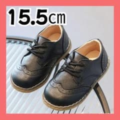 サイズ15 レザー風 紐靴 キッズ フォーマルシューズ ブラック 男の子