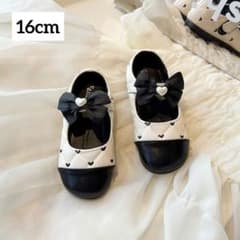 女の子 フォーマルシューズ 16cm ハート柄 白黒 結婚式 入園卒園 キッズ
