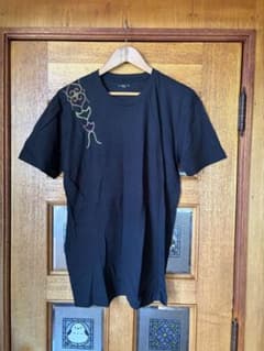 ⑤北海道アイヌ文様 刺繍Tシャツ ブラック 手刺繍 民族文様