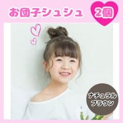 お団子ウィッグ キッズ2個セット ナチュラルブラウン シュシュ つけ毛 2304