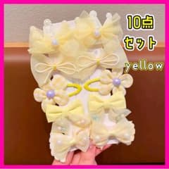 可愛い イエロー ヘアクリップ 10点セット リボン 花 パール風