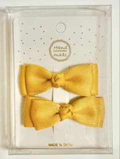 イエローサテンリボンヘアピン2個セット