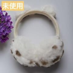 耳付きイヤーマフ ヒョウ柄 ホワイト 耳あて