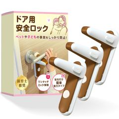 &COCO ドアノブ ロック 扉 ドアロック 部屋の鍵 後付け 取付簡単 強力粘着 キレイに剥がせる 猫 脱走防止 チャイルドロック ドア ドア開け防止 (ブラウン3個) 国内発送