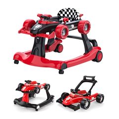 新品 歩行器 ベビーウォーカー 赤ちゃん 歩行機 育児 3way ウォーカー/手押し車として使用可能 歩く練習 安全ストッパー 取り外し可能 高度調整可能 滑り止め 車形 安全 音楽を再生可能 6か月 室内玩具 (レッド)