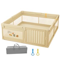 新品 BQKOZFIN ベビーサークル サークル 赤ちゃん (120x160x66cm)長方形 コンパクト 扉付き 大型 プレイヤード baby playpen 滑り止め吸盤 メッシュタイプ 洗濯可能 収納バッグ付き 室内外対応 子供 軽量 日本語の説明書付き