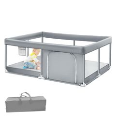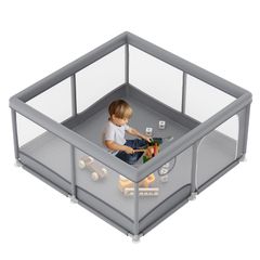 新品 SUNHOO ベビーサークル 折りたたみ サークル 赤ちゃん メッシュ ベビーフェンス キッズサークル プレイヤード 組み立て不要 工具不要 収納バッグ付き (グレー 150*180cm)