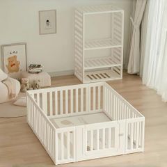 新品 OSJ ベビーサークル 内径150*180cm 変形可能 収納棚へ変身可能 扉付き ベビーゲート ベビーフェンス プレイヤード 簡単組立 柵 キッズ【内径150*180cm+厚み1cmプレイマット】